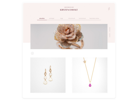 In aufwändigen Print- und Onlineauftritten werden die Schmuckstücke edel und mit viel Liebe zum Detail präsentiert. So kommen sie in ihrer Einzigartigkeit, Hochwertigkeit und stilvollen Eleganz effektvoll zur Geltung. Vom Logo bis zur Schrift, von der Farbauswahl bis zur Website-Navigation – Gestaltung, Ausführung und Ausstattung sind perfekt aufeinander abgestimmt, hochästhetisch und emotional.