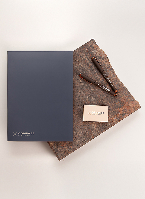 Ein Rebranding, das Orientierung bietet. Der neue Markenauftritt überträgt die Werte von Compass – Verlässlichkeit, Klarheit und Richtung – in eine zeitgemäße visuelle Sprache. Der moderne Kompass im Logo wird zum zentralen Identifikationspunkt und spiegelt die Rolle des Unternehmens als Wegweiser im Immobilienmarkt wider. Ruhige Farben, klare Typografie und hochwertige Materialien schaffen ein Erscheinungsbild mit Substanz – professionell, nahbar und unverwechselbar.