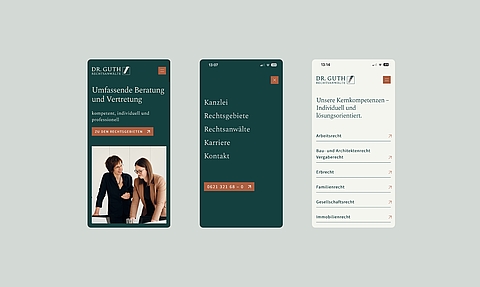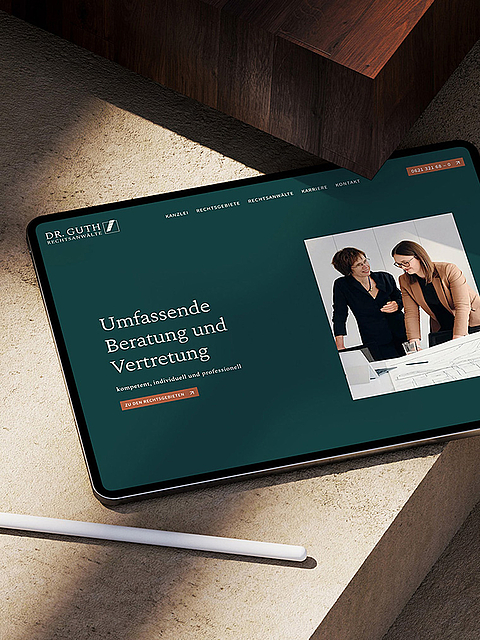 Ziel war ein moderner Webauftritt, der Fachkompetenz und Persönlichkeit gleichermaßen vermittelt. Die neue Website überzeugt durch eine klare Informationsarchitektur, ein konsistentes Farb- und Gestaltungskonzept sowie individuell produzierte Bilder, die Vertrauen und Nähe schaffen. Die modulare Struktur ermöglicht eine einfache Erweiterbarkeit und sorgt für intuitive Orientierung und Wiedererkennbarkeit. Sowohl gestalterisch als auch technisch spiegelt die Website den Anspruch der Kanzlei wider und funktioniert auf allen Endgeräten reibungslos.
