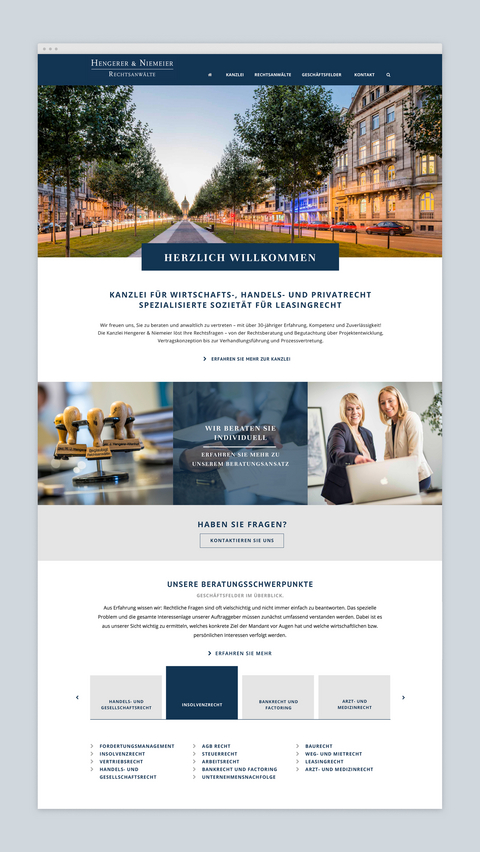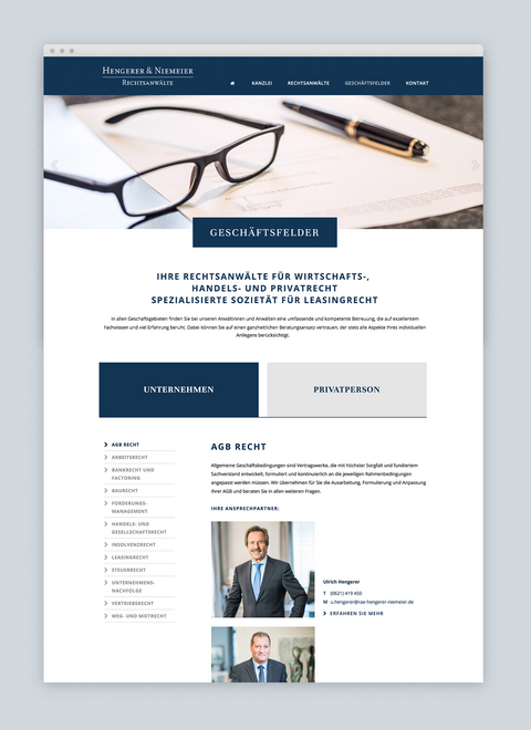 Die Modernisierung und personelle Verjüngung der Kanzlei soll sich widerspiegeln in einem aufgelockerten, klaren und deutlicher strukturierten Corporate Design und Webauftritt.