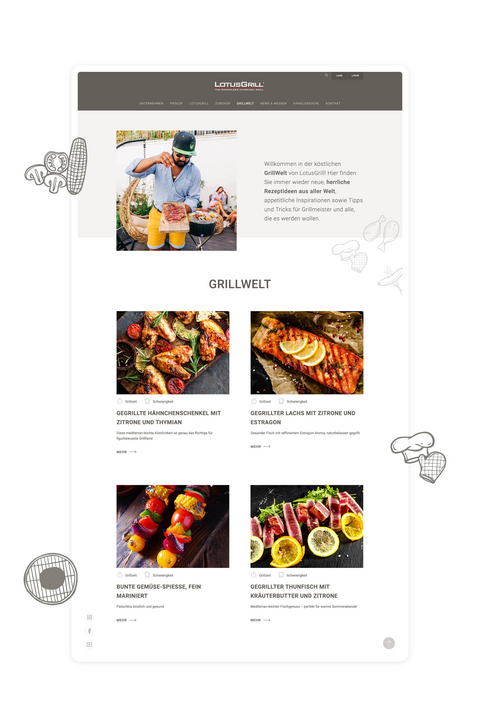 Darstellung der Marke „Lotusgrill“ mit ihrer stetig wachsenden Produkt- und Zubehörpalette mittels einer ansprechenden und nutzerfreundlichen Webseite; Nutzung eines Content Management Systems, das für den Kunden einfach zu handhaben ist.