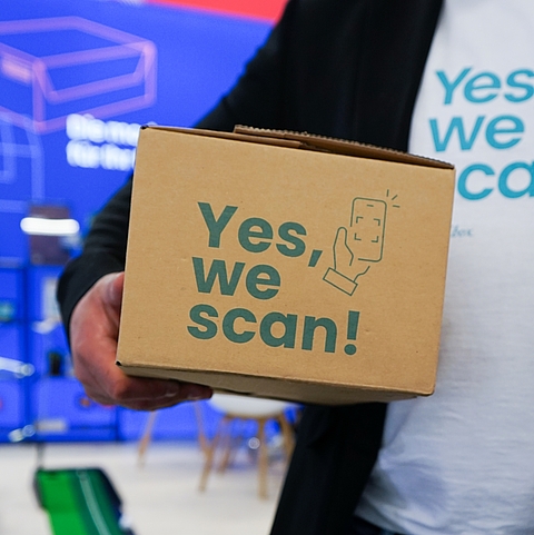 Der Messeauftritt zeichnet sich durch lebendiges Blau, prägnante Botschaften aus. Überall präsent: die farbigen Boxen als Keyvisual. Zur Abrundung haben wir außerdem eine Reihe cooler Give-Aways oder Corporate Fashion Artikel wie T-Shirts, Postkarten und Pins entwickelt.