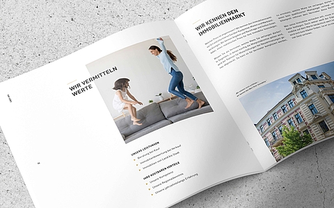 - Vertriebsunterlagen: Exposé, Flyer, Imagebroschüre